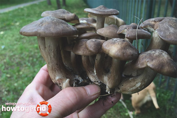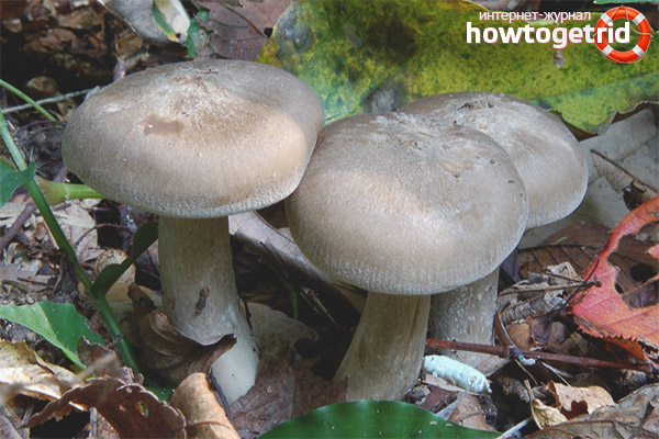 - In the same fruiting season, some mushrooms also bring crops. Therefore, you need to know which fruiting bodies are similar to a crowded row. For example, smoky gray lyophillum has an ash body with a yellowish tinge. At the same time, the pulp of such mushrooms has a characteristic floral-fruity aroma.