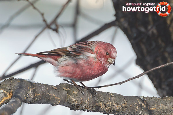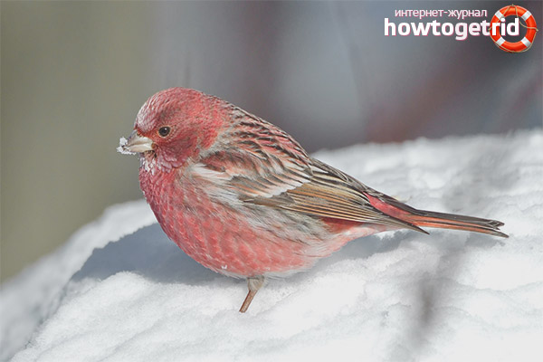In flight, lentils, like most representatives of the family finch, use a non-linear trajectory. In addition, they are distinguished by a noticeable tail length and a pink-crimson color of the plumage of males that attracts attention. Siberian lentils also differ from other birds of this species by the presence of pink shades in the color of females. To move on the ground he uses his fingers for short jumps.