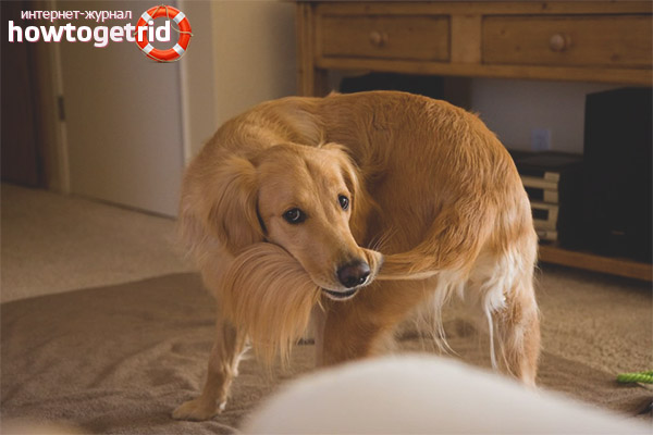 If before the dog did not show interest in its tail, the dog did not pull it to chew, lick, then the owner should pay attention to the tail area. To begin with, you should check it for the absence of wounds, thorns, ticks. If such a problem is not noticeable, then it is recommended to take the pet to the veterinarian.
