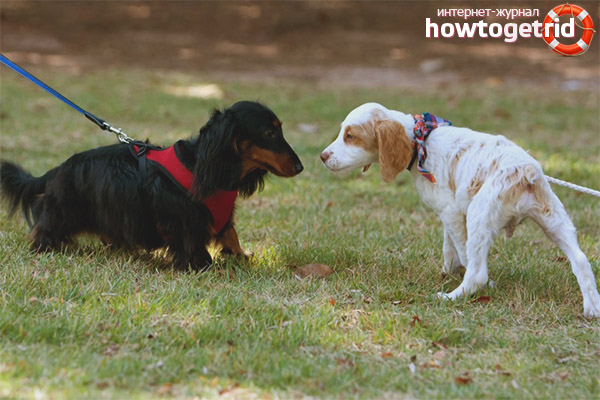 The help of other owners who have dogs with a good calm character will be needed. If the pet has developed such fear that it is afraid to approach others, let them walk alongside them, but on leashes, just like their own pet. Such a process will need to be repeated several times, and then change the place of walking so that there is no getting used to it, and the dog constantly meets new friends who do not harm her.