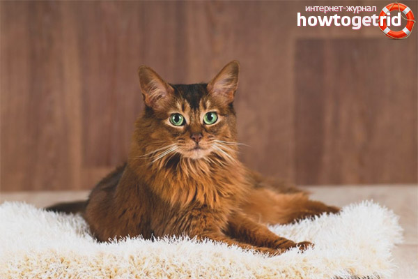 What about a Somali cat? This is an amazingly beautiful pet with an incredibly beautiful coat, as well as an equally luxurious tail. In appearance, the cat is a bit like a fox, which makes it incredibly attractive.