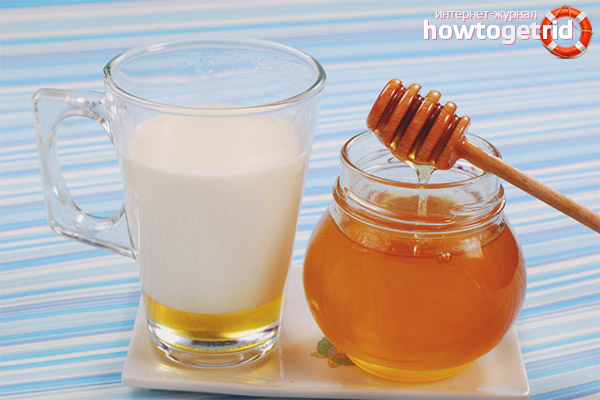 - Milk with butter. 250 ml is taken a tablespoon of oil. For these purposes, you can use butter or cocoa butter. If desired, honey is added.