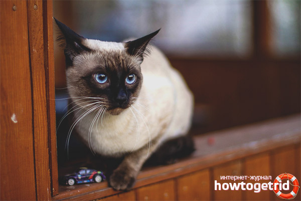 Thai cats are energetic and active. Their behavior can resemble dogs. Representatives of this breed do not like to hide in a secluded place in anticipation of the owner's affection. Instead of lying calmly on a sofa, a cat of this breed will actively explore the nooks of the house, hunt and play. For such an active pet, the future owner should take care of the equipment of personal space for the animal in advance. It is desirable that in the house for him there was a special corner with a claw point.