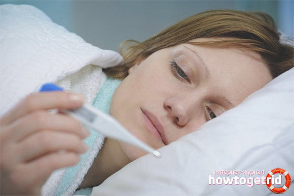 - Postpartum complications. Since the temperature often appears in the first month after the birth of the baby, it can be due to a complication after childbirth. As a rule, this happens if parts of the placenta, blood clots, etc. remain in the uterine cavity. Over time, these tissues begin to become inflamed, which causes a rise in temperature. In this case, it is necessary to do an ultrasound and consult a gynecologist.