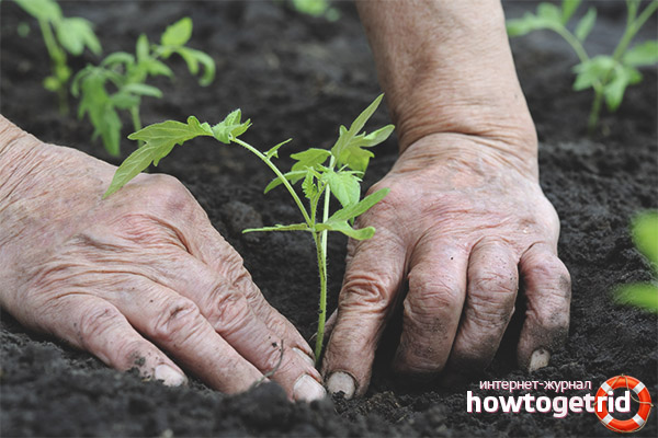 During the transplantation of tomatoes into the soil, it is necessary to germinate the plant in advance. To do this, before sowing, seeds should be soaked in a light solution of potassium permanganate. Thus, microorganisms will be killed, which in the future will be able to harm the plant. After holding the seeds in the solution for a while, they should be planted in special cells for seedlings, trays or boxes.