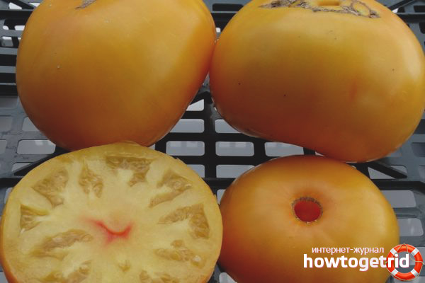 The variety is early in terms of ripening, gives a large crop, is resistant to late blight. The bush is up to 150 cm high. The fruits are very elegant, flat-round, yellow or orange, with delicate sugary pulp and a small number of seeds, weighing up to 300 g.