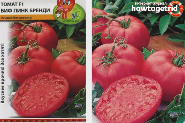 Tomato Beef pink brandy F1 is a tall hybrid of medium maturity, with large fruits of a saturated pink color. Subject to growing conditions, it is possible to obtain fruits weighing up to 1 kg. Dimensional plants, sparse, grow up to two meters. Bushes require garter, pinching.