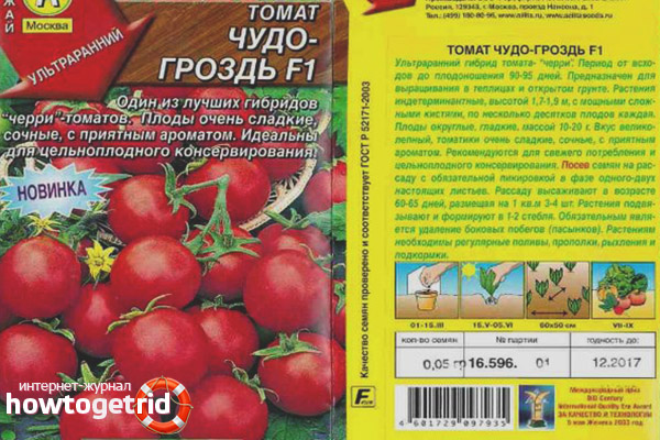 The tomato variety with small fruits is always interested in inveterate gardeners. They have excellent taste, easy to care for, besides, they are easy to preserve whole. Such blanks will always decorate any holiday table. Tomatoes Miracle bunch F1 are entered in the State register in 2012. The variety is intended for cultivation in open areas and in closed ground. Refers to hybrids with ultra-early ripening. The fruiting period begins 90-95 days after the appearance of sprouts.