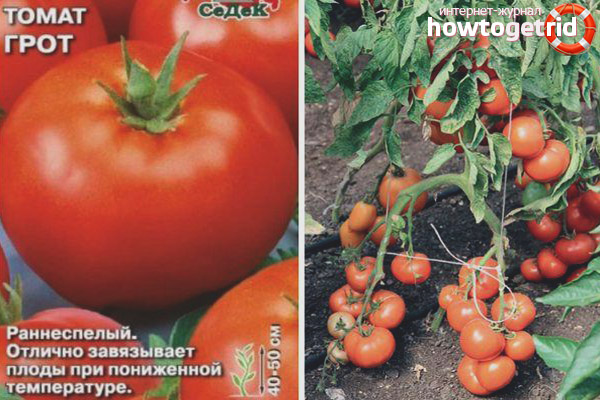 The tomato variety Grotto has been successfully grown for two decades. It was first bred by selection in Russia in the early 90s of the 20th century. This variety is good in that it can be grown even in apartment conditions, it is not demanding on the sown area. The plant itself is stunted, reaches a height of 30-40 cm, almost like a houseplant on a balcony, loggia, window sill. But this does not mean that it can not be grown in greenhouse-greenhouse conditions. This tomato does not take up much space and is wide, since the crown is not sprawling and not dense.