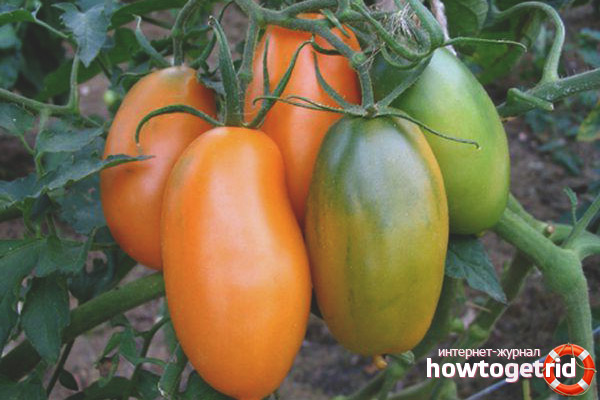 The bushes are low, compact, up to 70 cm in height. A flower brush is laid after 7-9 of this leaf. In the brush, 12-15 oblong fruits are formed. After heat treatment, the fruit does not lose its structure, remains as dense and elastic, unlike other grades.