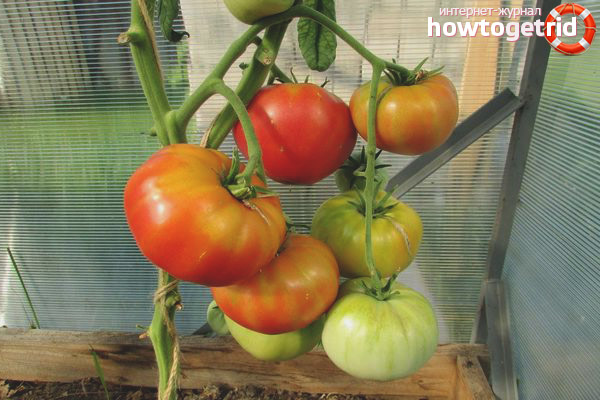 Planting seeds should be correctly calculated so that by the time of planting seedlings in a greenhouse or greenhouse, their age reaches 45-60 days. To obtain strong seedlings, tomatoes need gradual hardening. If you observe the periods of plant development, then an early harvest can be obtained in early July. Landing at a permanent place is done in pairs, the plant has a high structure and needs to be garter, otherwise there is a threat to get broken trunks or poor quality fruits.