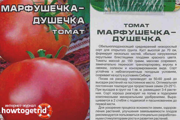 Marfushechka Dushechka seedlings can be successfully grown at home in a box on the windowsill. Seeds should be planted in a box with specially prepared and warmed up to 15 With soil about 2 months before the alleged planting of seedlings in open ground. Before planting, the soil on the bed needs to be well loosened, fertilizer applied, which is responsible for yield and growth of bushes.