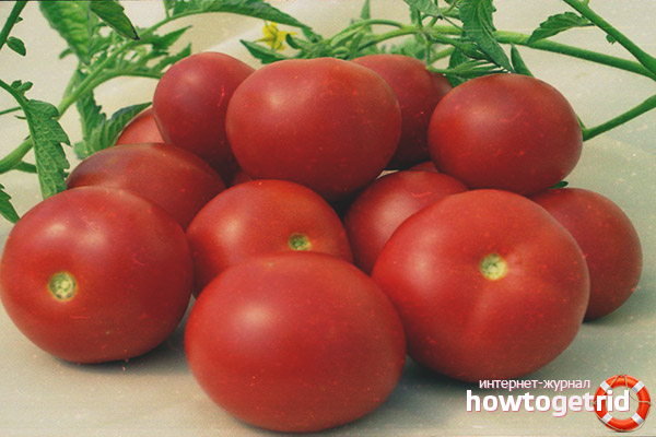 The height of the bushes reaches 50 cm. The leaves are medium sized, saturated green. Fruits begin to be tied over the 7th leaf, repeat the ovaries through 1 leaf. On one bush 4 brushes are formed. Subject to the rules of agricultural cultivation techniques, one kg of ripe tomatoes can be harvested from one square meter.
