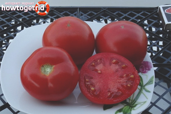 The fruit is perfectly tied. Almost every flower turns into a large and ripe tomato. Rarely peduncle withers and falls off. The amount of foliage is ordinary; the fruits have a smooth, rounded shape of bright red color. The tomato is not very dense, juicy inside. It has a pronounced taste with a sweet taste.