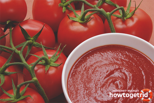 It is obtained by heat treatment of tomatoes. For production use only ripe brown or red tomatoes. First, seeds are taken from the fruit. After that, they are boiled until a consistency of the required density is obtained. Naturally, the product loses a significant part of the moisture. At the same time, the concentration of solids becomes much higher. Almost in fact, receive a concentrate of tomatoes.