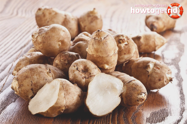 Earthen pear contains inulin concentration. The enzyme is an organic substance in the form of a polysaccharide. Thanks to this component, the digestive function is stimulated, the microflora in the intestine is normalized.