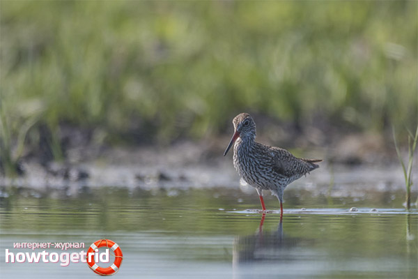 During rains, the river overflows, then returns to the channel, but large huge reservoirs remain. Often near them you can meet a sandpiper, thoughtfully standing on one paw and hiding a large red beak under the wing. This is a herbalist resting. What kind of bird is this?