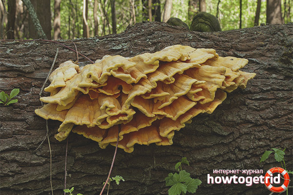 Sulfur yellow fungus is a species of mushrooms related to edible species (4 cat.). Many mushroom pickers know the tinder under a different, no less common name: chicken mushroom, which, in fact, quite aptly describes the taste qualities of representatives of this species.