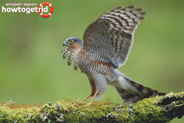 Very often, a bird is confused with a sparrowhawk, but, unlike the second, the tuvik has a lighter back, a gray head with no inclusions, and no light eyebrows. Legs and fingers are short, thick. Spatula, by the way, is much faster and more agile.