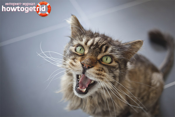 - A dangerous viral disease that entails a fatal outcome. Affects the central nervous system of the cat, which leads to loss of voice and other dangers. The virus is transmitted to humans, so the owner needs to be alert. Animals are vaccinated against rabies. However, if the vaccine was not delivered, it is necessary to recognize the threat by the following symptoms.
