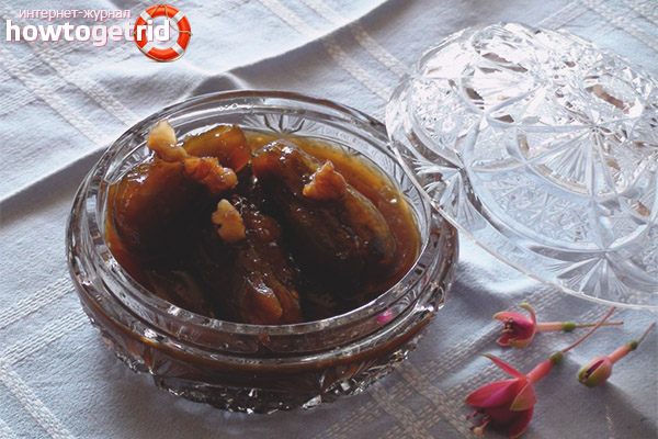 - Nuts are poured into jam, and then cinnamon, lemon juice is added. If there is no lemon, then citric acid is suitable - just a teaspoon. At the end, the treat will languish for 30 minutes.