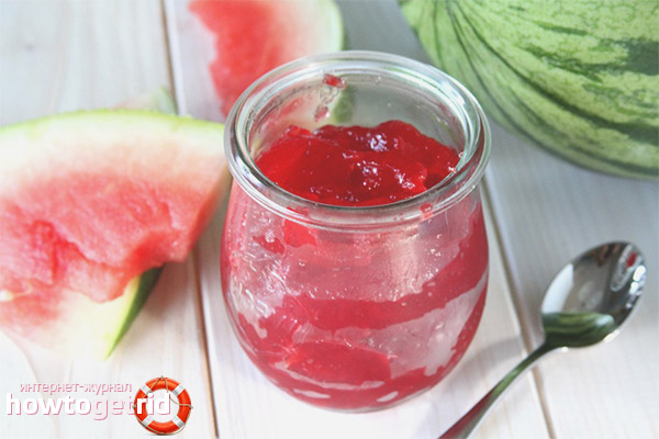 Watermelon is cut into small cubes and 1 kg is poured. sugar, settles for 3 hours. During this time, enough juice will stand out so that the slices do not burn on boiling. The rest of the sugar is added to the mass and simmered for 20-30 minutes with regular stirring. The foam that forms on the surface must be removed in a separate bowl.