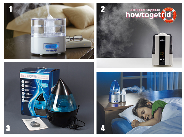 1) Humidifiers with cold steam 2) with hot steam 3) ultrasonic humidifiers 4) with ionizers