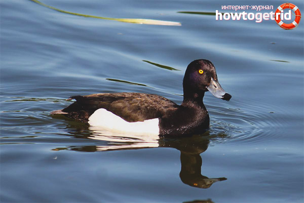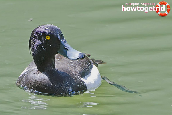 A clear representative of the duck family is the crested black, which is so called because of the peculiar hairstyle on the head. As the name implies, the bird has a crest - a distinctive feature of the group.