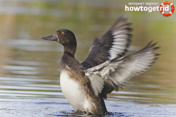 - Ducks are diving, as mentioned earlier. These representatives of the family are compact, they have a white stripe on their wings. There are definitely differences in gender.