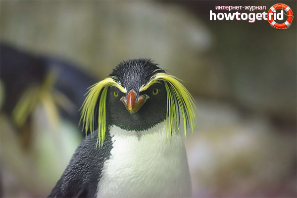 Crested penguins are completely unsuitable for a single lifestyle, they are combined into huge colonies of more than 3 thousand individuals. They like to live not only on the sea coast, but also on rocky ledges, choosing sites near fresh water reservoirs, as they need to drink. On those islands where there is a lot of soil, they even dig minks and nesting niches. They communicate with each other, making loud noises. And during the mating season around the colony stands incessant whine. Despite the good-natured appearance, they are aggressive towards strangers and uninvited visitors. Seeing the intruder, they begin to yell heart-rendingly, bouncing and stomping. At the same time, twitch their shoulders, open their eyebrows, spread their wings and lower their heads menacingly. If a stranger does not want to get out, the defender starts to fight - he hits his head, wields wings, pokes with his beak.
