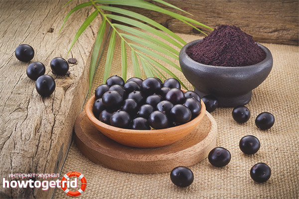 Acai berries are more efficiently consumed fresh, but the locals went further and learned how to make juice and alcohol from it. If the crop is not processed in a timely manner, then the bulk of the nutrients are lost. For a process that depreciates the fruits, 2-3 hours are enough. It is during this period that the procurers seek to freeze or dry the crop. It is also preferable to prepare extracts, infusions, tinctures, decoctions immediately after collection.