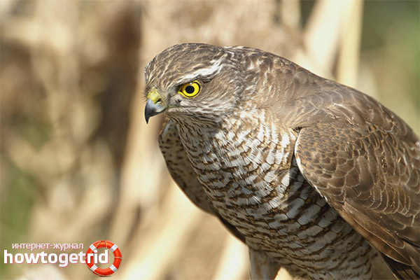 When a hawk hunts for a variety of small animals and birds, it can sometimes become a victim of a larger and more dangerous predator. Martens attack him at night, and in the daytime, another species of hawk is the goshawk.