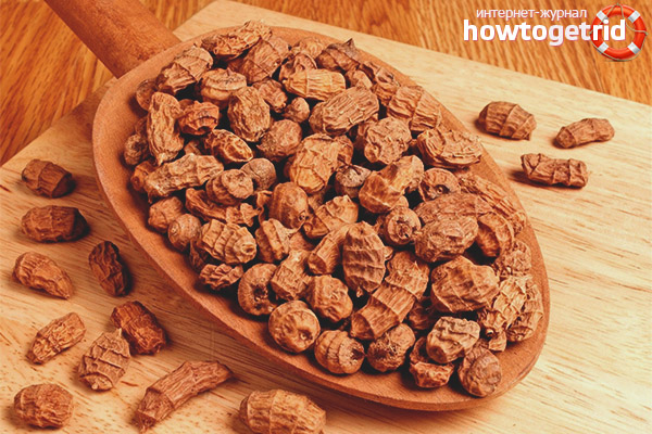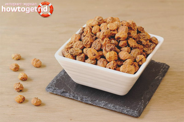 It is noticed that if you constantly eat small portions of the kernel of chufa nuts, a person will gain emotional balance. Nuts, insisted on alcohol or vodka, quickly relieve symptoms of a cold.