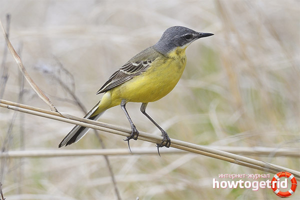 The yellow wagtail is considered a family of wagtail, the weight of this small bird does not exceed 17 grams, and the body size of an adult reaches 17 centimeters. The wagtail has a rather long and thin tail that characterizes all representatives of this family. The bird acquired its name due to the peculiar tail shake that it periodically makes.
