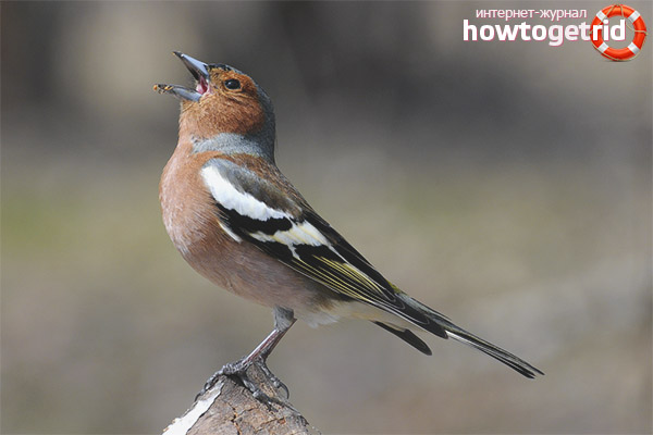 The diet of these birds contains mainly various insects. Studies have been conducted to study the nutrition of finches. Scientists came to the conclusion that they feed not only on insects, but also on weed grass seeds, fruits, and berries.